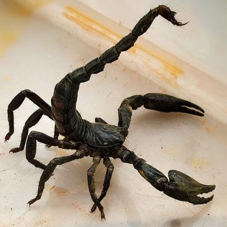 ![]() 这个学名是什么我就不废话了…… 蛛形纲动物,蜘蛛亦同属蛛形纲。它们典型的特征包括瘦长的身体、螫、弯曲分段且带有毒刺的尾巴,4对足,一对螯(10足全蝎5对足) ![]() 蝎完全为肉食性,取食无脊椎动物,如蜘蛛、蟋蟀、小蜈蚣、多种昆虫的幼虫和若虫。它靠触肢上的听毛或跗节毛和缝感觉器发现猎物的位置。 蝎取食时,用触肢将捕获物夹住,后腹部(蝎尾)举起,弯向身体前方,用毒针螫刺。毒腺外面的肌肉收缩,毒液即自毒针的开孔流出。大多数蝎的毒素足以杀死昆虫,但对人无致命的危险,只引起灼烧样的剧烈疼痛 。蝎用螯肢把食物慢慢撕开,先吸食捕获物的体液,再吐出消化液,将其组织于体外消化后再吸入。进食的速度很慢。 ![]() 1、蝎子属于昼伏夜出的动物,喜潮怕湿,喜暗惧怕强光刺激。喜群居,好静不好动,并且有识窝和认群的习性,蝎子大多数在固定的窝穴内结伴定居。一般在大群蝎窝内大都有雌有雄,有大有小,和睦相处,很少发生相互残杀现象。但若不是同窝蝎子,相遇后往往会相互残杀。 2、蝎子有冬眠习性,一般在4月中下旬,即惊蛰以后出蛰,11月上旬便开始慢慢入蛰冬眠,全年活动时间有6个月左右 来源:http://www.uchis.com/kunchong/2948/ |