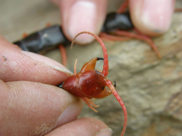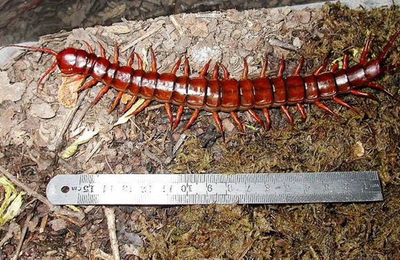 ![]() 蜈蚣是蠕虫形的陆生节肢动物,属节肢动物门多足纲。 身体是由许多体节组成的,每一节上有一对足,所以叫做多足动物。 白天它们隐藏在暗处,晚上出去活动,以蚯蚓、昆虫等动物为食。 ![]() 蜈蚣所食的昆虫有蟋蟀、蝗虫、金龟子、蝉、蚱蜢以及各种蝇类、蜂类,甚至可食蜘蛛、蚯蚓、蜗牛以及比其身体大得多的蛙、鼠、雀、蜥蜴及蛇类等。 在早春食物缺乏时,也可吃少量青草及苔藓的嫩芽。 人工饲养时食物新鲜,稍有腐败即不进食。 ![]() 吓尿了…… ![]() 头部清晰照! 蜈蚣钻缝能力极强,它往往以灵敏的触角和扁平的头板对缝穴进行试探,岩石和土地的缝隙大多能通过或栖息。 密度过大或惊扰过多时,可引起互相厮杀而死亡。 在人工养殖条件下,饵料及饮水充足时也可以几十条在一起共居。 来源:http://www.uchis.com/kunchong/2949/ |